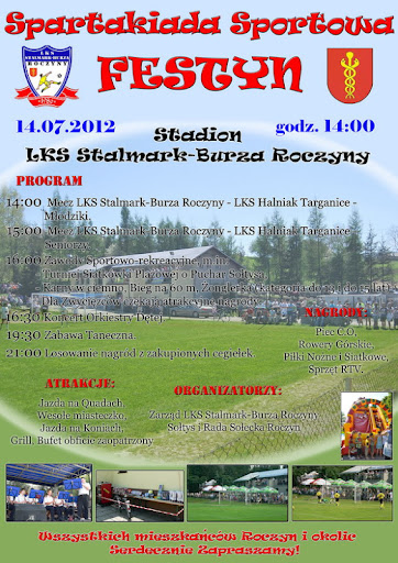 - 14:00 – Mecz LKS Stalmark-Burza Roczyny – LKS Halniak Targanice
