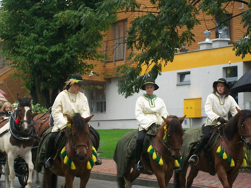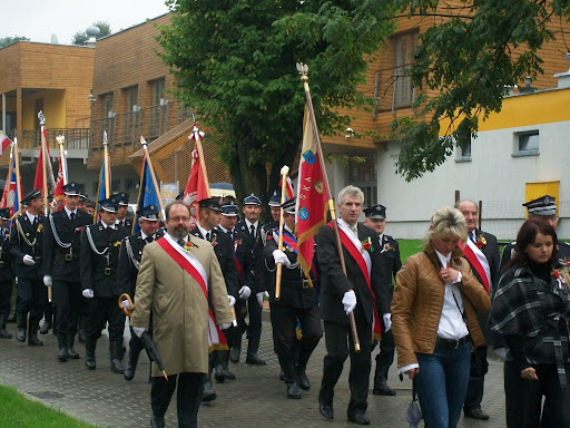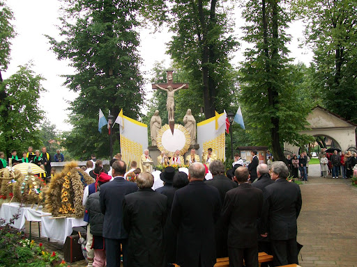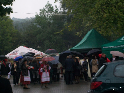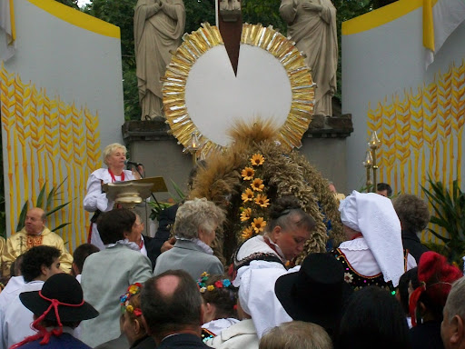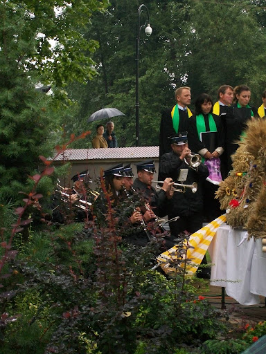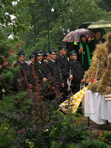 O godzinie 10.15 poczty sztandarowe,zaproszeni goście dotarli z korowodem dożynkowym do placu przy Kościele Św.Macieja.